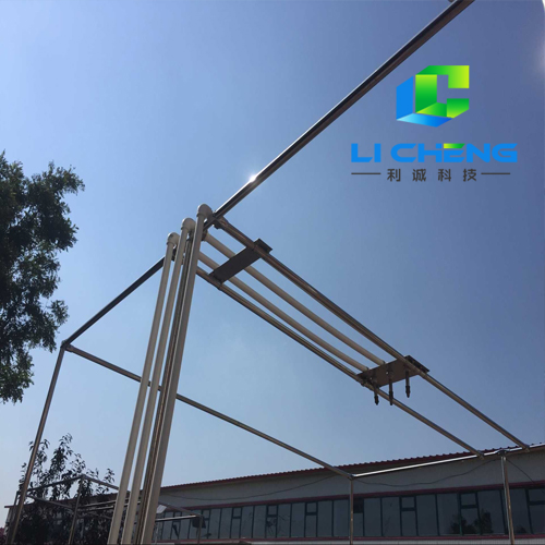熱電渡管,管徑為40 mm,立柱式的架設(shè)。降雨層面分成三個層面。總體四路系統(tǒng),每種系統(tǒng)的一路和另一路對應(yīng)成疊加降雨方式。